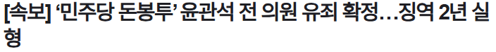 민주당 돈봉투의 핵심 윤관석 전 의원 유죄 확정이라는 소식이다.