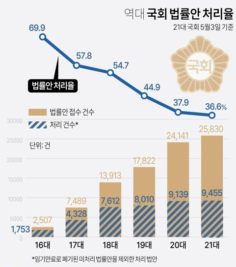 민주당이 방탄석을 잡은 20대 21대 국회가 지속 되며 국회의 법안은 처리되지 않고 계류중이다.