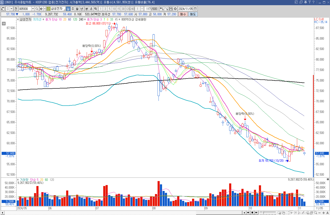 삼성전자 힘이 없는 하락세