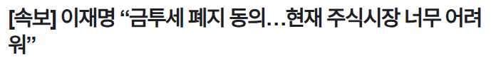 오늘 발표된 이재명 금투세 폐지 동의 발표