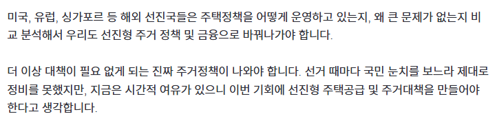 주택정책이 무주택자 청년등을 문제없이 살게 한다는 말을 적어 놓았는데, 적어도 생각을 하고 적은건지 궁금하다.