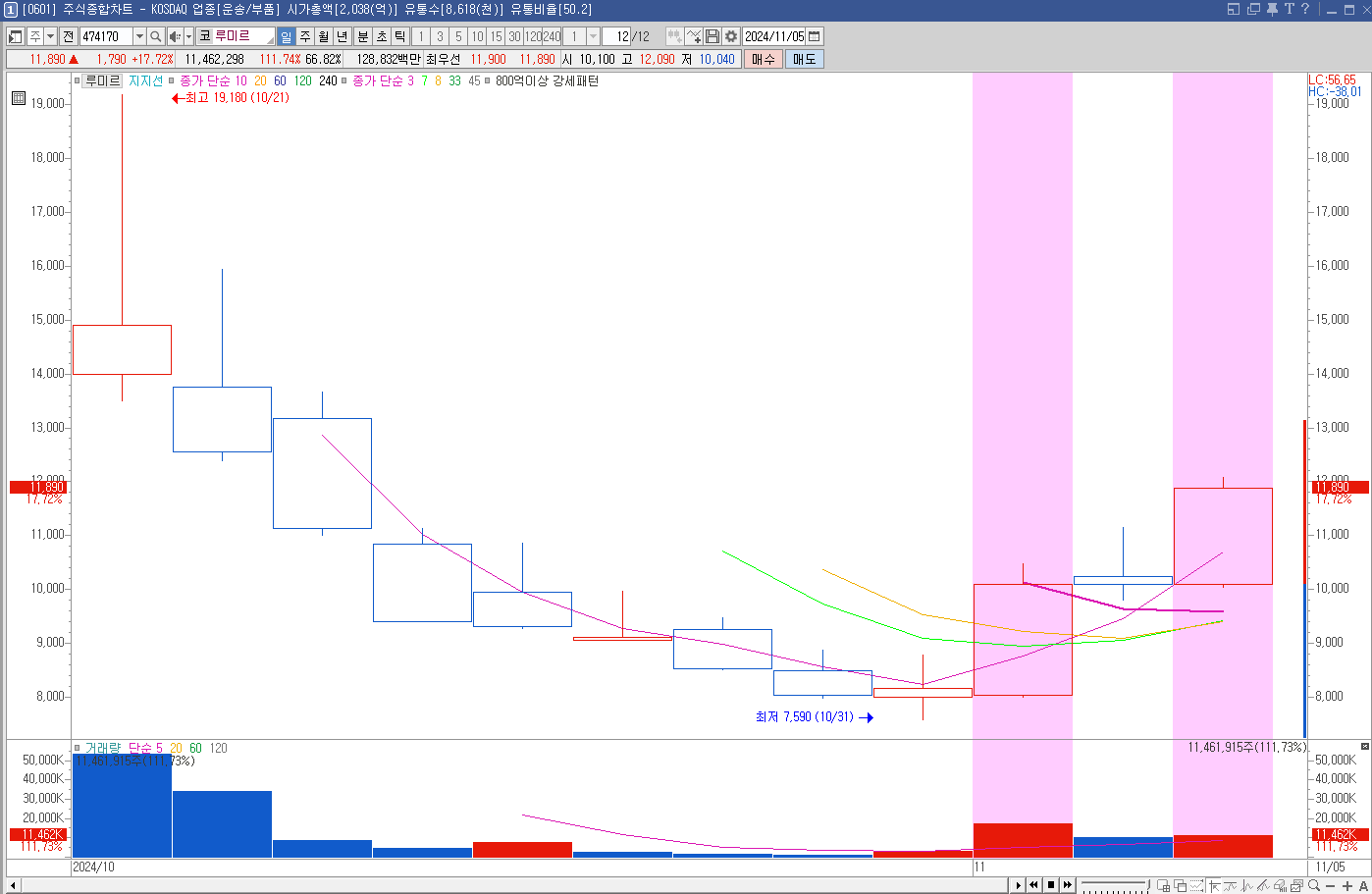 루미르가 2일전 양봉때는 위험한데 지지받고 오늘 또 양봉을 뽑아내고 있습니다.
